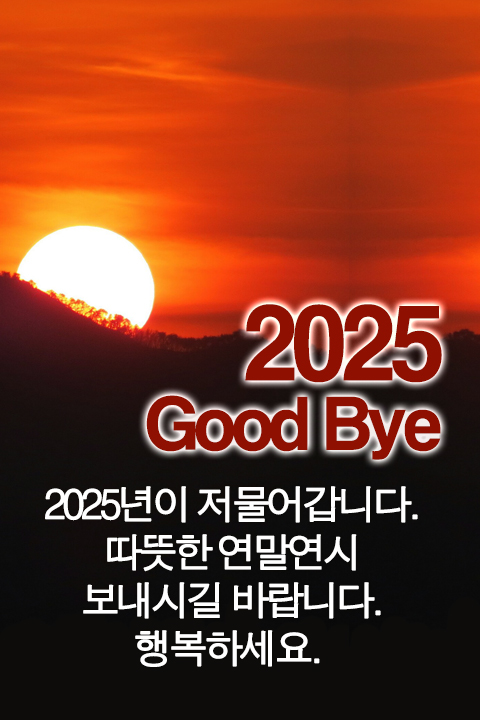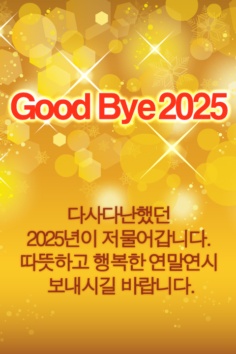 Good bye 2025, Happy NEW YEAR~ ¸çÄ¥¸¸ Áö³ª¸é 2025³âÀÇ ¸·ÀÌ ³»¸³´Ï´Ù. ¾ó¸¶³²Áö ¾ÊÀº 2025³âÀ» Á¶¿ëÈ÷ Á¤¸®Çϸç ÀÚ½ÅÀ» µÚµ¹¾Æ º¼ ¼ö ÀÖ´Â °ªÁø ³¯ º¸³»½Ã±æ ¹Ù¶ø´Ï´Ù. µû¶æÇÑ »ç¶û°ú Á¤À¸·Î ÇູÇÑ ¿¬¸» µÇ½Ã±æ ±â¿øÇϸç, »õÇØ º¹ ¸¹ÀÌ ¹ÞÀ¸¼¼¿ä!